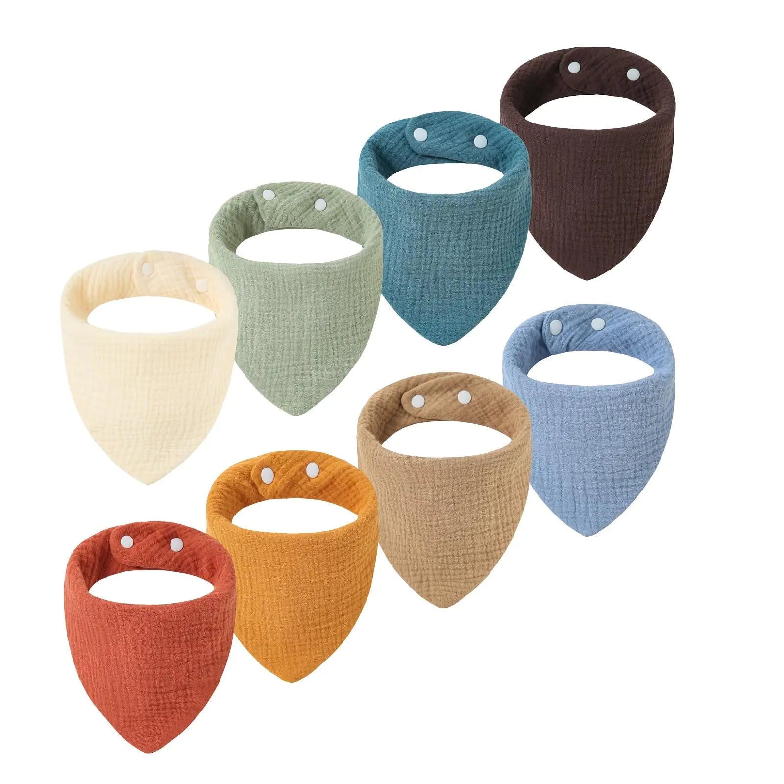 8 PACK Muslin Baby Bibs 6-layer 100% Cotton Unisex Absorbent Adjustable Bandana Drool Bibs for Teething Drooling (Multi&Classic)