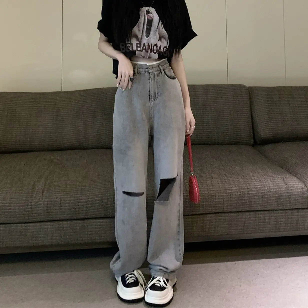 High Waist Loose Ripped Jeans for Women - Summer Style