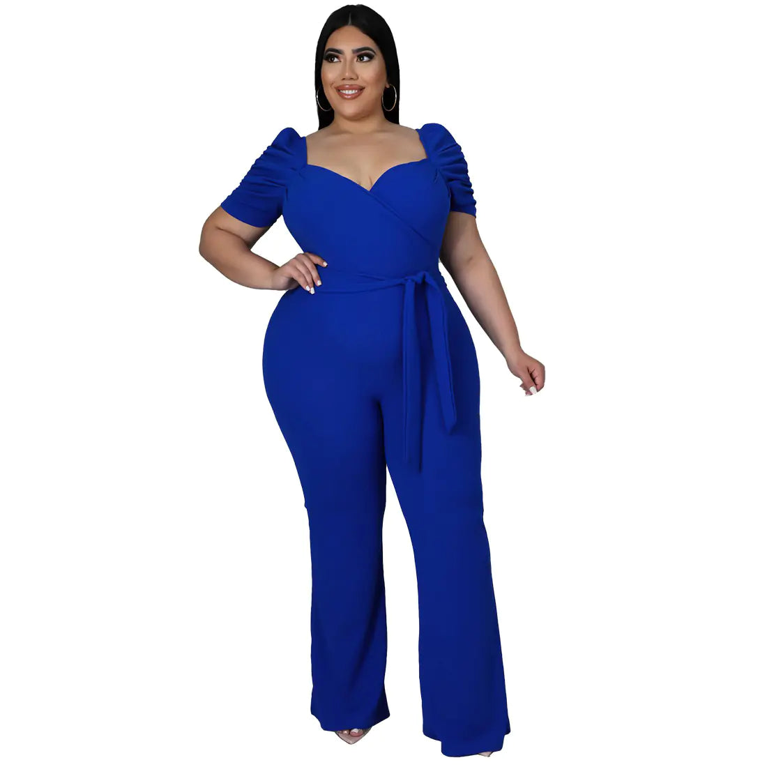 The standout ruffled sleeves and sophisticated high waist design create a flattering silhouette that enhances your natural curves. No need for a belt, as this jumpsuit fits perfectly and allows you to move freely while looking fabulous.